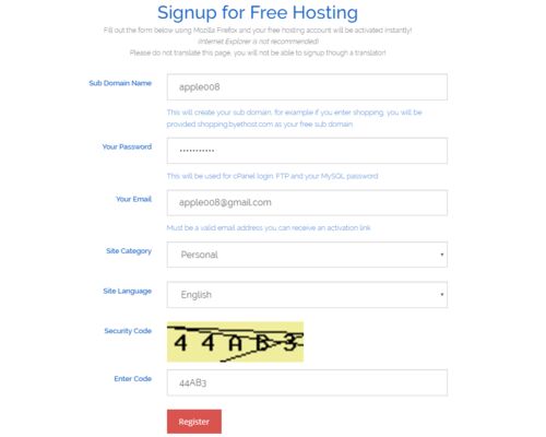 3/18 update 我還用Byethost不到10天,帳號就被莫名停用了囧!請大家小心..... 《Byethost》是一個免費的網頁空間服務,主要特色是有1G的大容量、且無廣告! 前一篇已寫過我選擇Byethost的原因,這邊來簡單紀錄一下申請步驟: